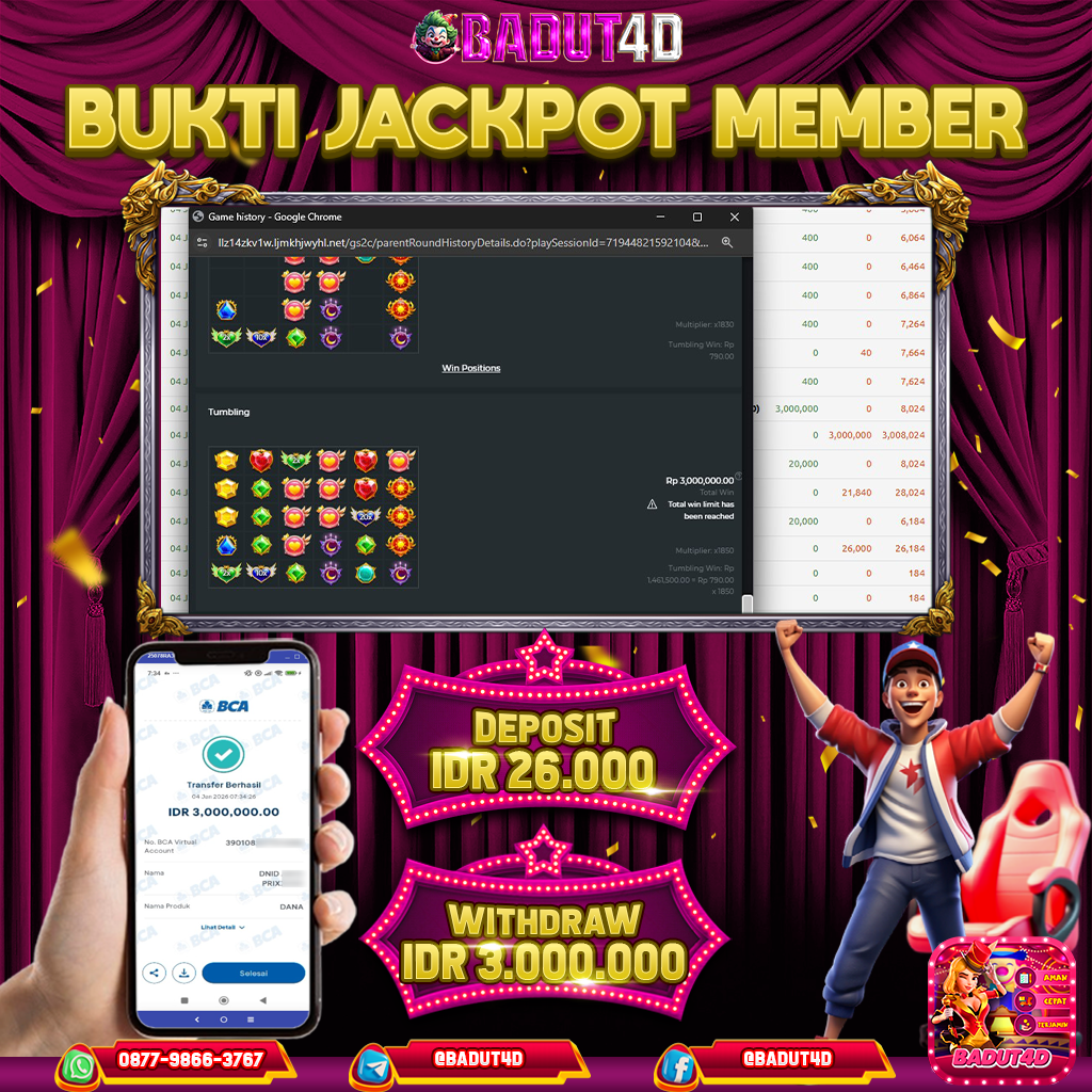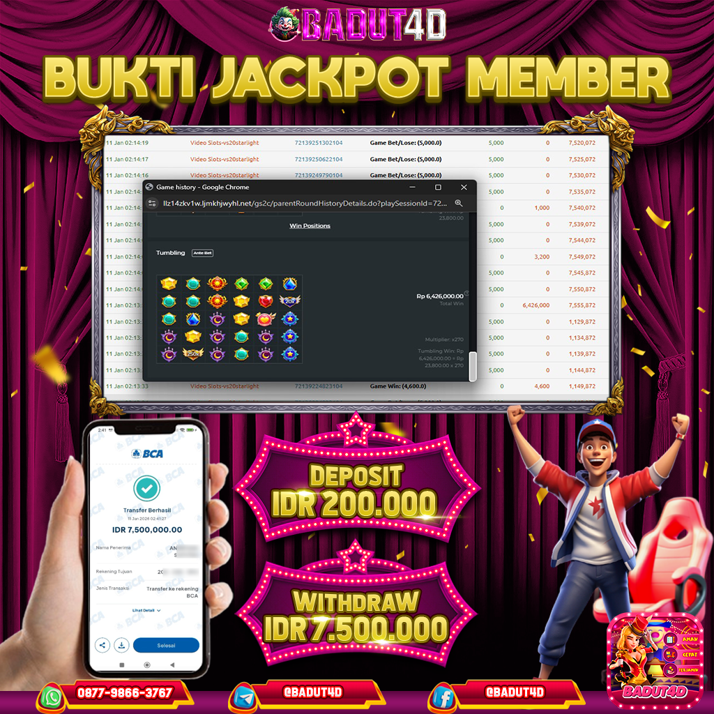 Selamat Kepada ID :NA***11 Telah berhasil mendapatkan kemenangan pada permainan STARLIGHT PRINCESS 1000 kemenangan Sebesar 7.500.000,Setelah mengisi formulir withdraw dengan kurung waktu hanya 5 – 10 menit pihak BADUT4d sudah…