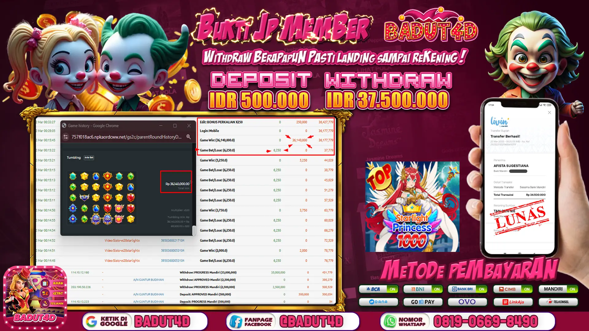 Selamat Kepada ID : A****A Atas Withdraw Rp. 37.500.000 Hari ini. Ditunggu Withdraw Selanjutnya dan ajak juga teman temannya bergabung di Badut4d