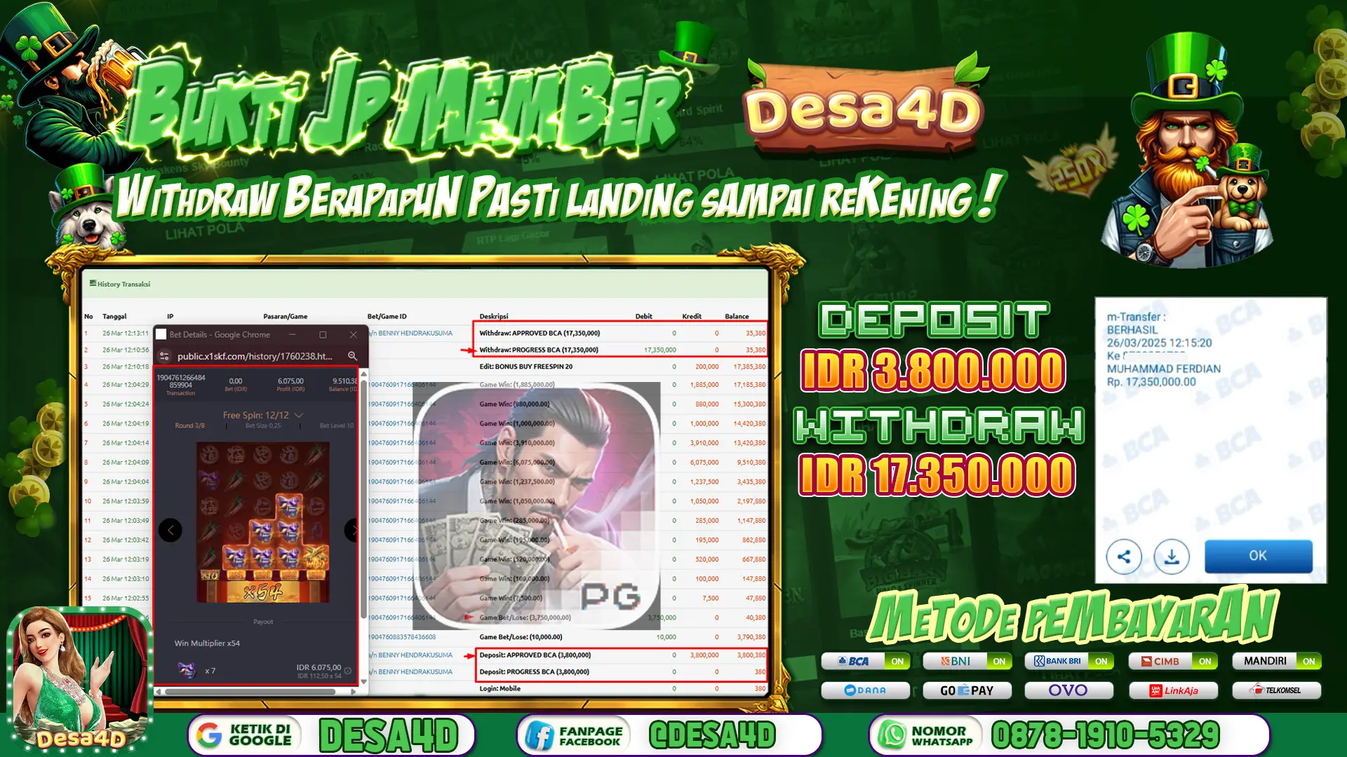 Selamat Kepada ID : F*******A Atas Withdraw Rp. 17.350.000 Hari ini. Ditunggu Withdraw Selanjutnya dan ajak juga teman temannya bergabung di DESA4D