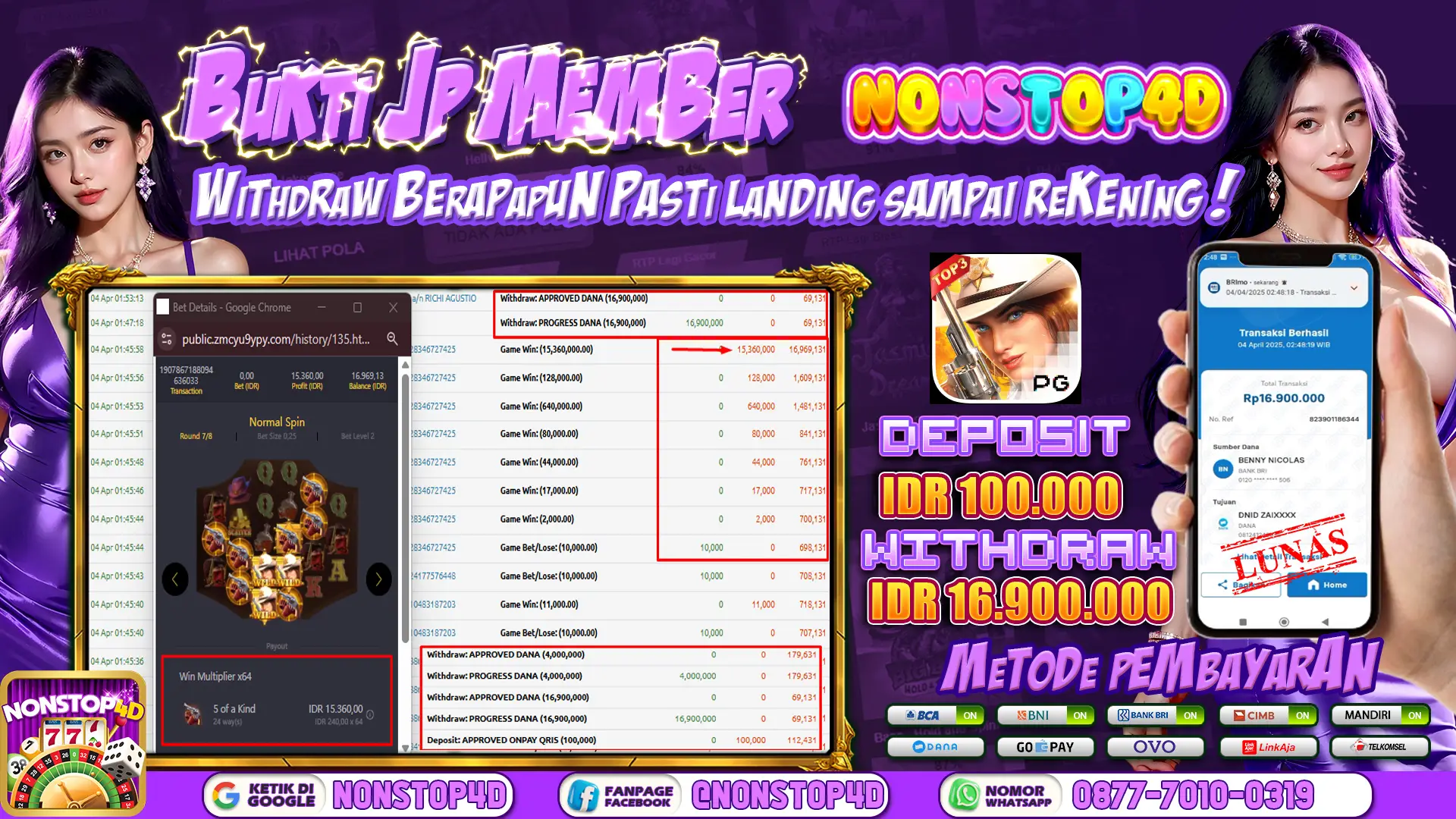 Tak hanya itu, kami juga menyediakan berbagai promo menarik, mulai dari bonus new member, cashback, hingga free spin setiap harinya! Sistem deposit dan withdraw kami cepat serta aman, didukung berbagai metode pembayaran termasuk e-wallet dan bank lokal. Bergabunglah sekarang dan rasakan sendiri keberuntungan Anda di NONSTOP4D Situs Slot Gacor 2025, di mana jackpot besar selalu siap menanti Anda!