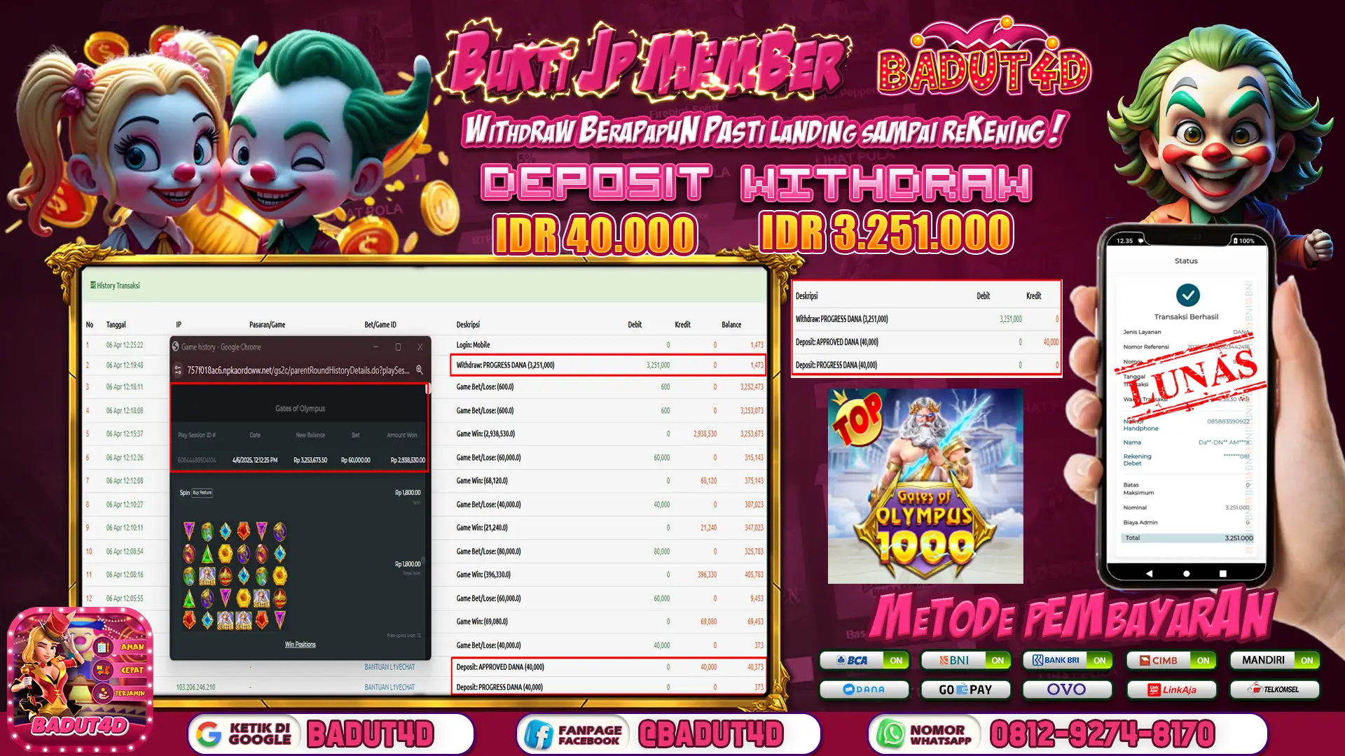 BADUT4D Bukti Kemenangan GATES OF OLYMPUS 1000