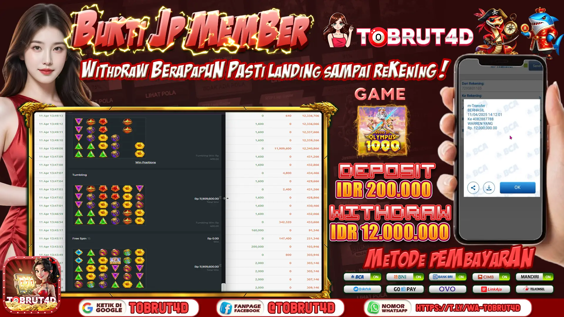 Selamat Kepada ID : S*******K Atas Withdraw Rp. 12.000.000 Hari ini. Ditunggu Withdraw Selanjutnya dan ajak juga teman temannya bergabung di TOBRUT4D