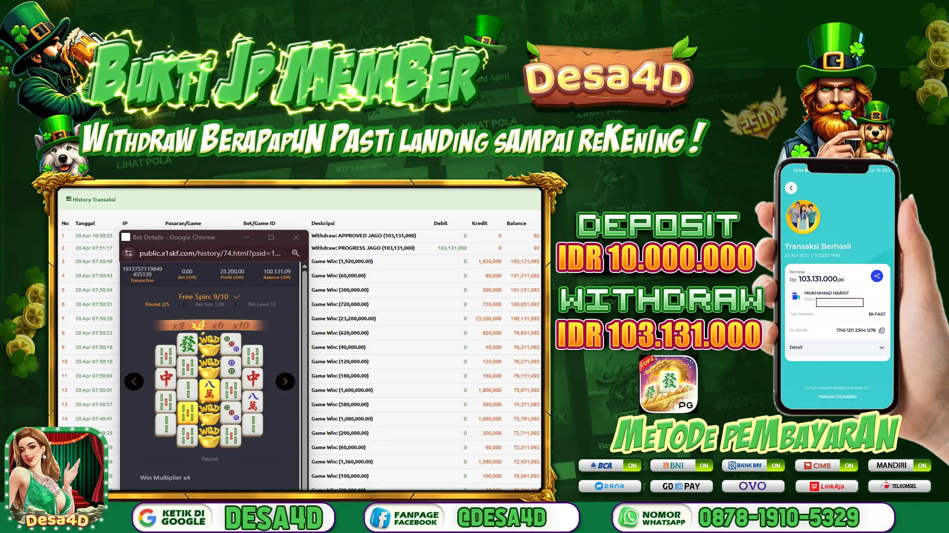 Selamat Kepada ID : M********T Atas Withdraw Rp. 103.131.000 Hari ini. Ditunggu Withdraw Selanjutnya dan ajak juga teman temannya bergabung di DESA4D