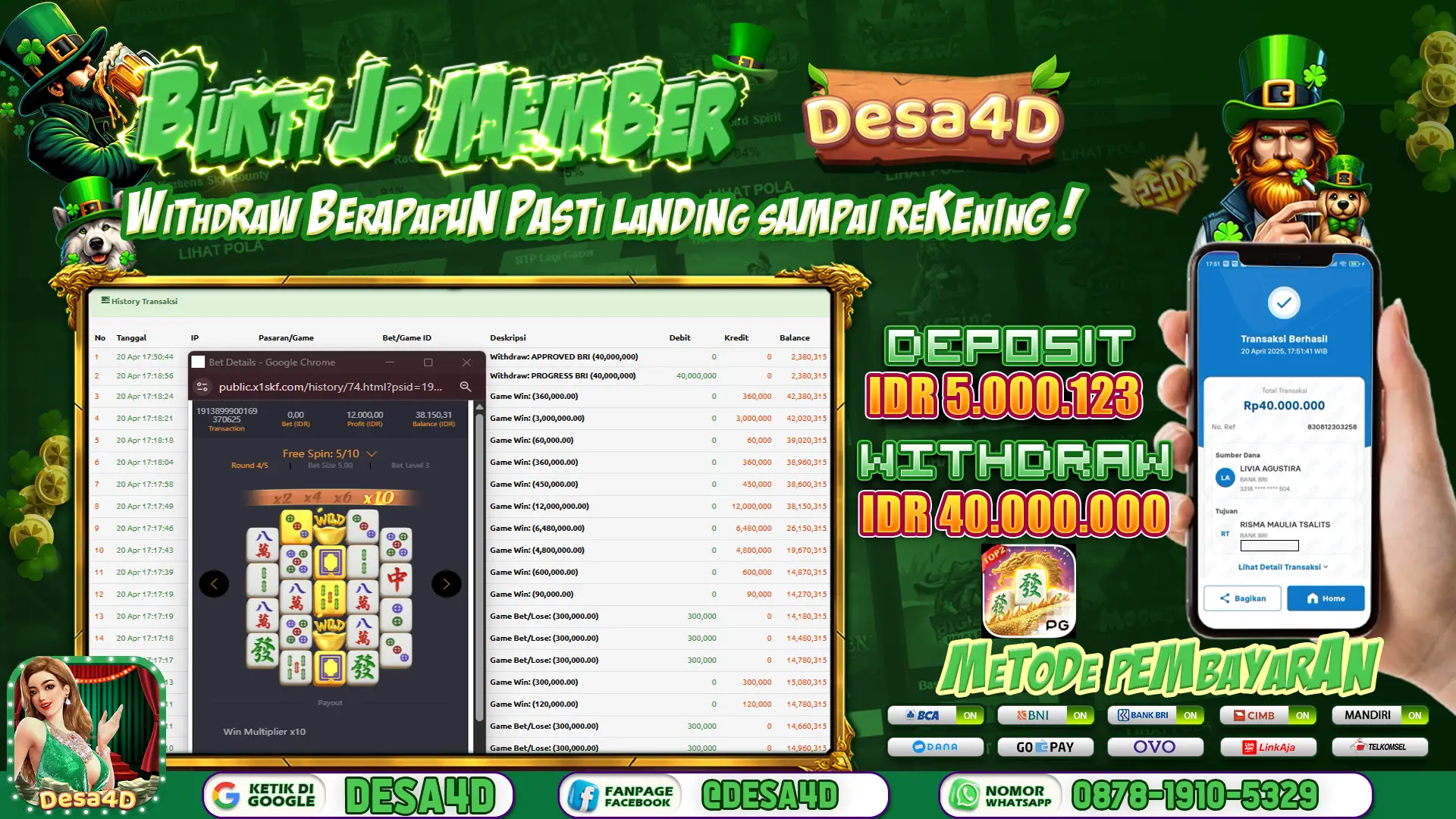 Selamat Kepada ID : R********S Atas Withdraw Rp. 40.000.000 Hari ini. Ditunggu Withdraw Selanjutnya dan ajak juga teman temannya bergabung di DESA4D