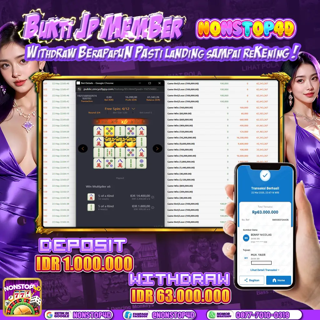 Tak hanya itu, kami juga menyediakan berbagai promo menarik, mulai dari bonus new member, cashback, hingga free spin setiap harinya! Sistem deposit dan withdraw kami cepat serta aman, didukung berbagai metode pembayaran termasuk e-wallet dan bank lokal. Bergabunglah sekarang dan rasakan sendiri keberuntungan Anda di NONSTOP4D Situs Slot Gacor 2025, di mana jackpot besar selalu siap menanti Anda!