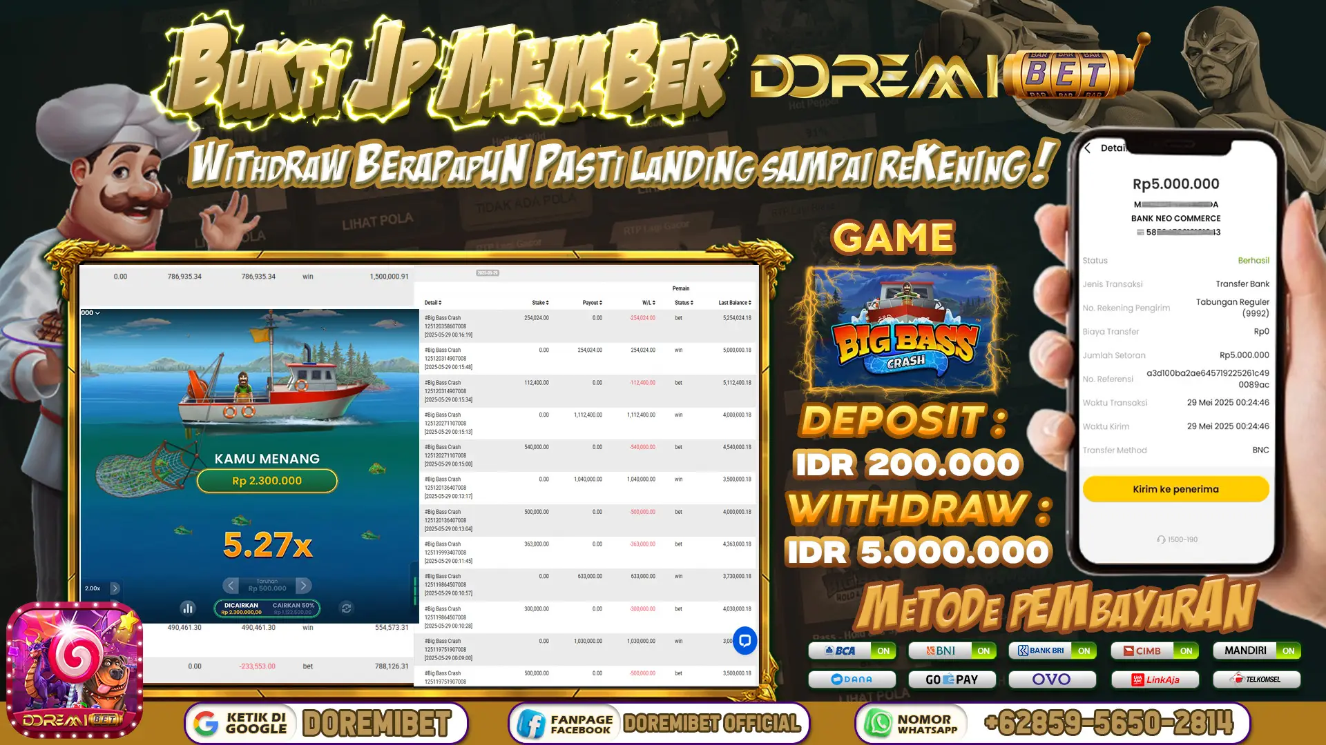 DOREMIBET Bukti Kemenangan BIG BASS CRASH