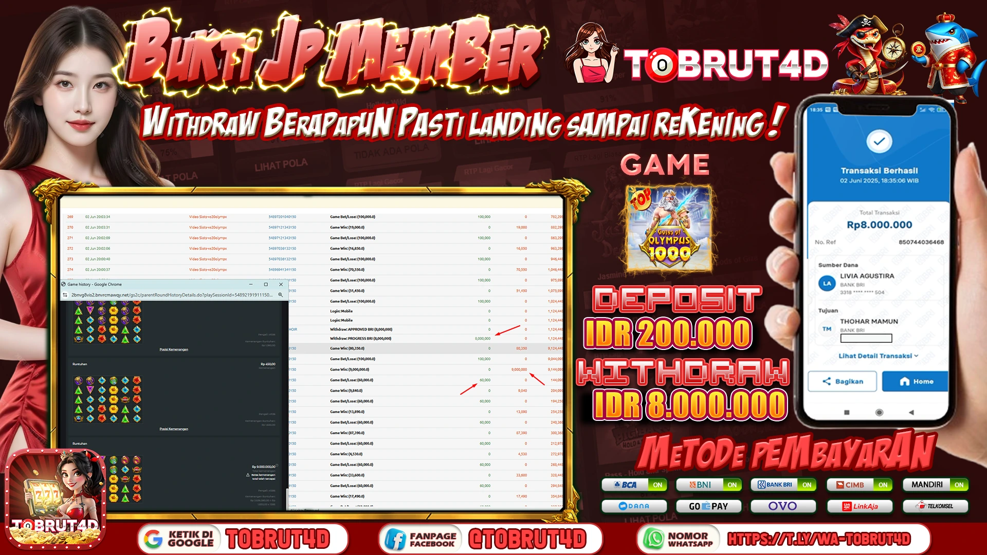 TOBRUT4D JACKPOT GATES OF OLYMPUS 1000 Rp 8.000.000