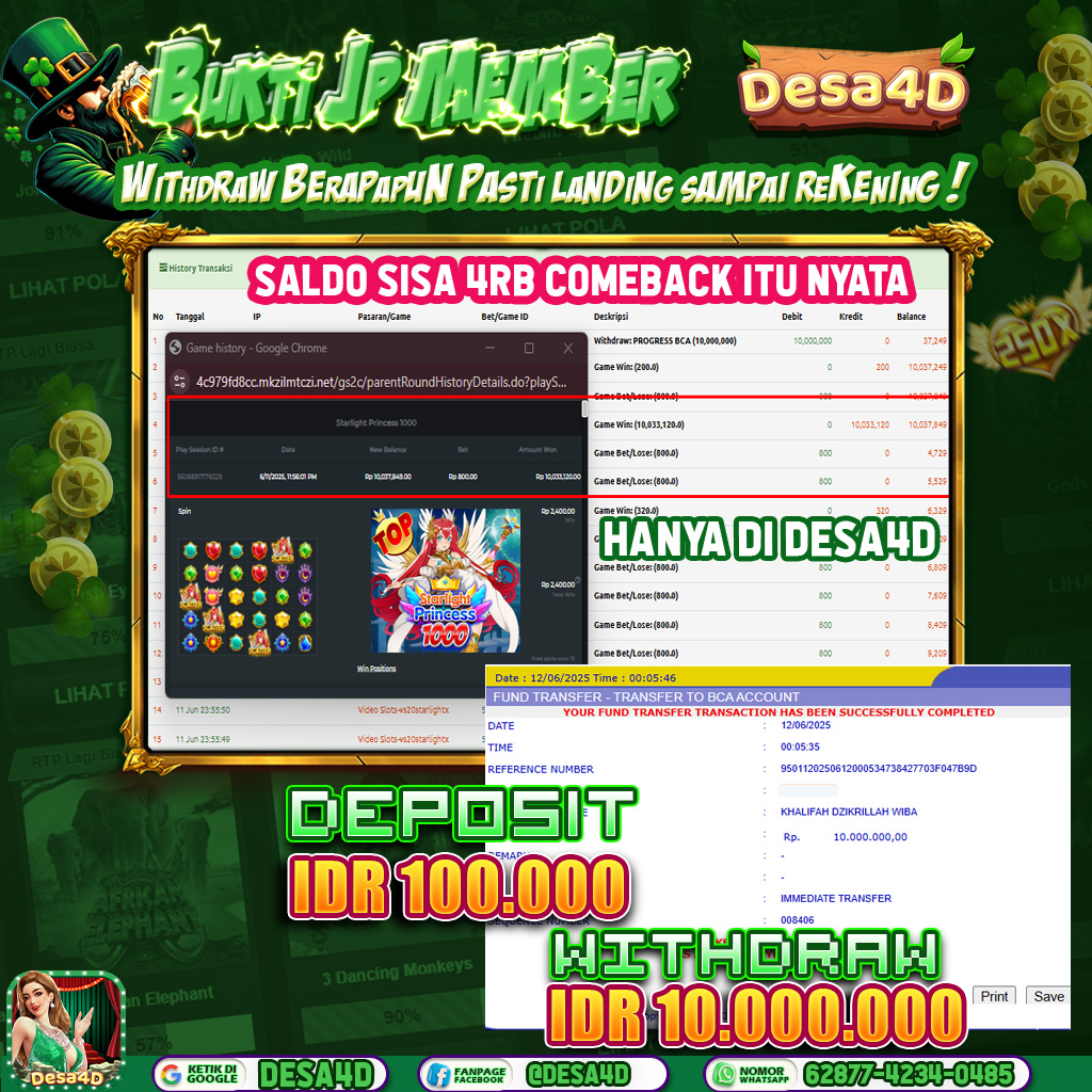 DESA4D Bukti Kemenangan Starlight Princess 1000