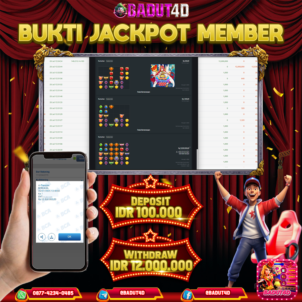 Tak hanya itu, kami juga menyediakan berbagai promo menarik, mulai dari bonus new member, cashback, hingga free spin setiap harinya! Sistem deposit dan withdraw kami cepat serta aman, didukung berbagai metode pembayaran termasuk e-wallet dan bank lokal. Bergabunglah sekarang dan rasakan sendiri keberuntungan Anda di BADUT4D Situs Slot Gacor 2025, di mana jackpot besar selalu siap menanti Anda!