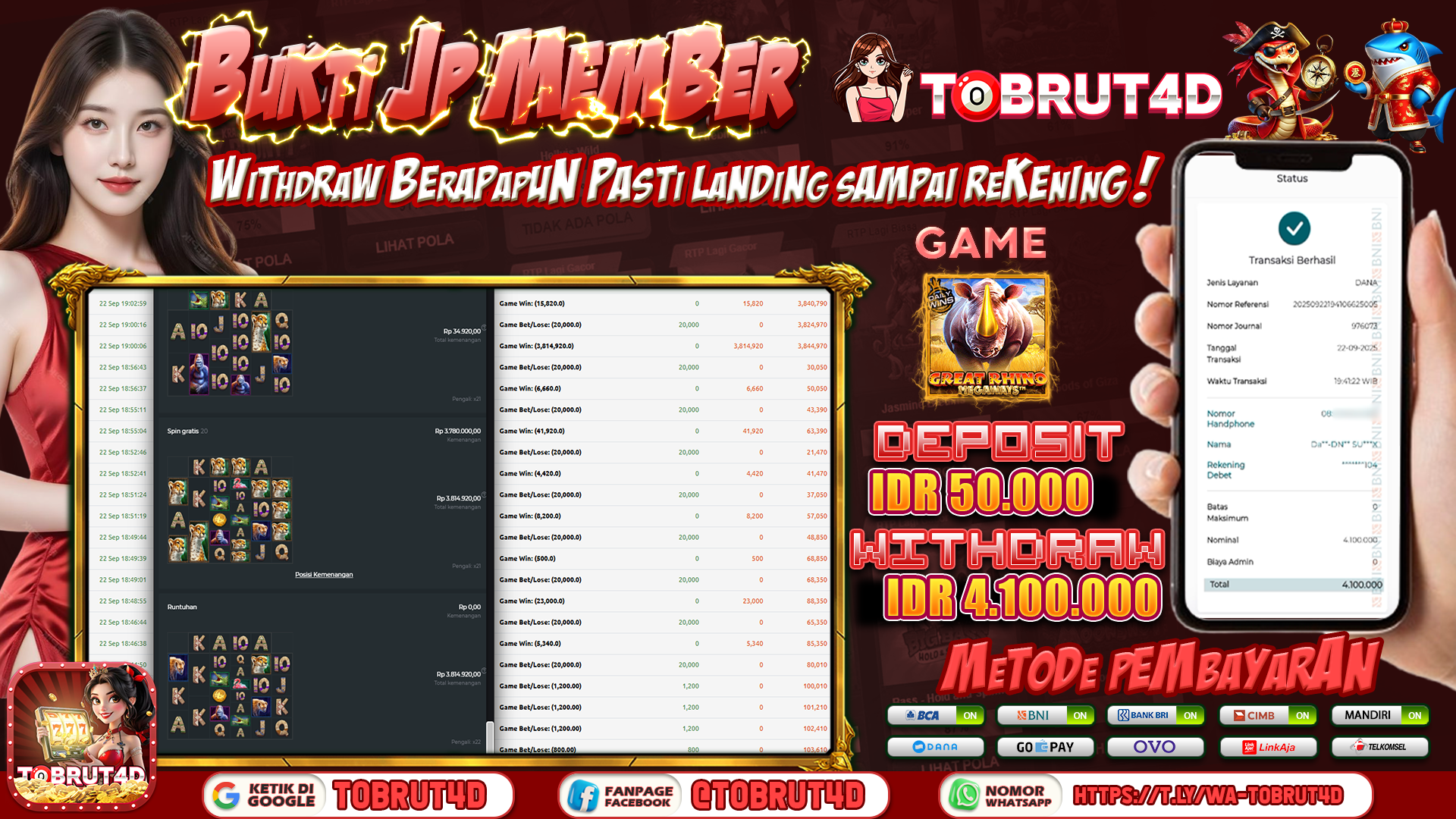 TOBRUT4D JACKPOT GREAT OF RHINO MEGAWAYS Rp 4.100.000