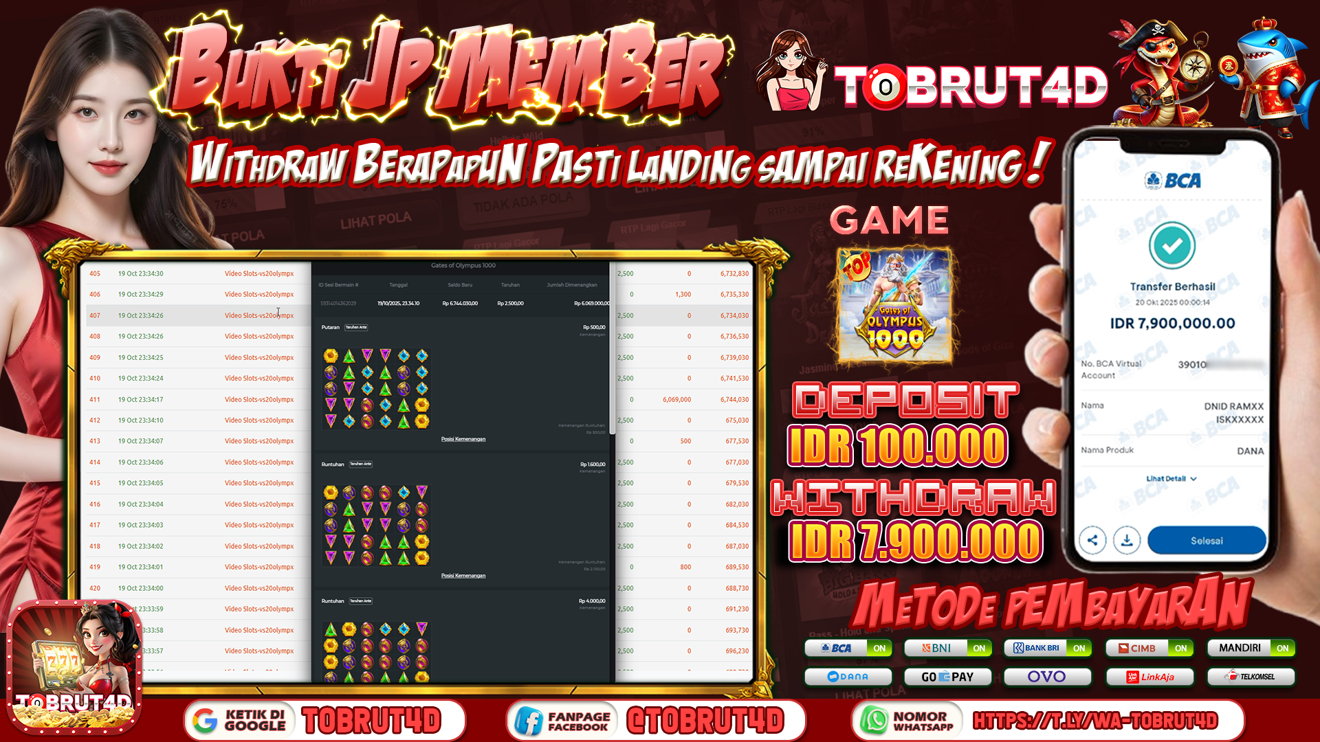 Selamat Kepada ID :K***2111 Telah berhasil mendapatkan kemenangan besar pada permainan GATES OF OLYMPUS 1000 kemenangan Sebesar 7.900.000,Setelah mengisi formulir withdraw dengan kurung waktu hanya 5 – 10 menit pihak tobrut4d sudah melakukan transfer kepada pemilik Userid dan dana sudah dapat di cairkan oleh pemenang. Bukti pembayaran yang kami berikan merupakan bukti pembayaran yang SAH / VALID yang langung di dapatkan melaui tanda transfer transaksi dari Bank yang di tuju.