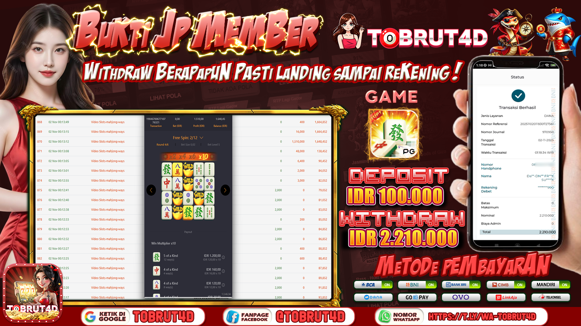 Tak hanya itu, kami juga menyediakan berbagai promo menarik, mulai dari bonus new member, cashback, hingga free spin setiap harinya! Sistem deposit dan withdraw kami cepat serta aman, didukung berbagai metode pembayaran termasuk e-wallet dan bank lokal. Bergabunglah sekarang dan rasakan sendiri keberuntungan Anda di TOBRUT4D Situs Slot Gacor 2025, di mana jackpot besar selalu siap menanti Anda!