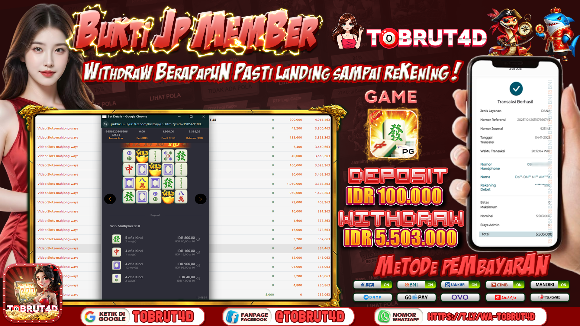 TOBRUT4D JACKPOT MAHJONG WAYS 1 RP 5.503.000