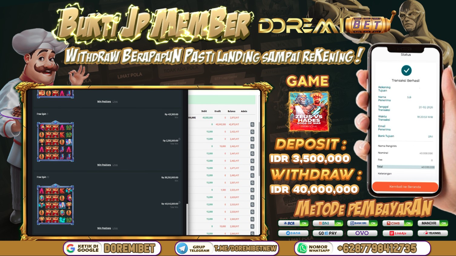 Selamat Kepada ID : ixxxxxxxxxxxxxy Telah berhasil mendapatkan kemenangan besar pada permainan Zeus vs Hades – Gods of War kemenangan Sebesar 40,000,000, Setelah mengisi formulir withdraw dengan kurung waktu hanya 5 – 10 menit pihak DOREMIBET sudah melakukan transfer kepada pemilik User id dan dana sudah dapat di cairkan oleh pemenang. Bukti pembayaran yang kami berikan merupakan bukti pembayaran yang SAH / VALID yang langung di dapatkan melaui tanda transfer transaksi dari Bank yang di tuju.